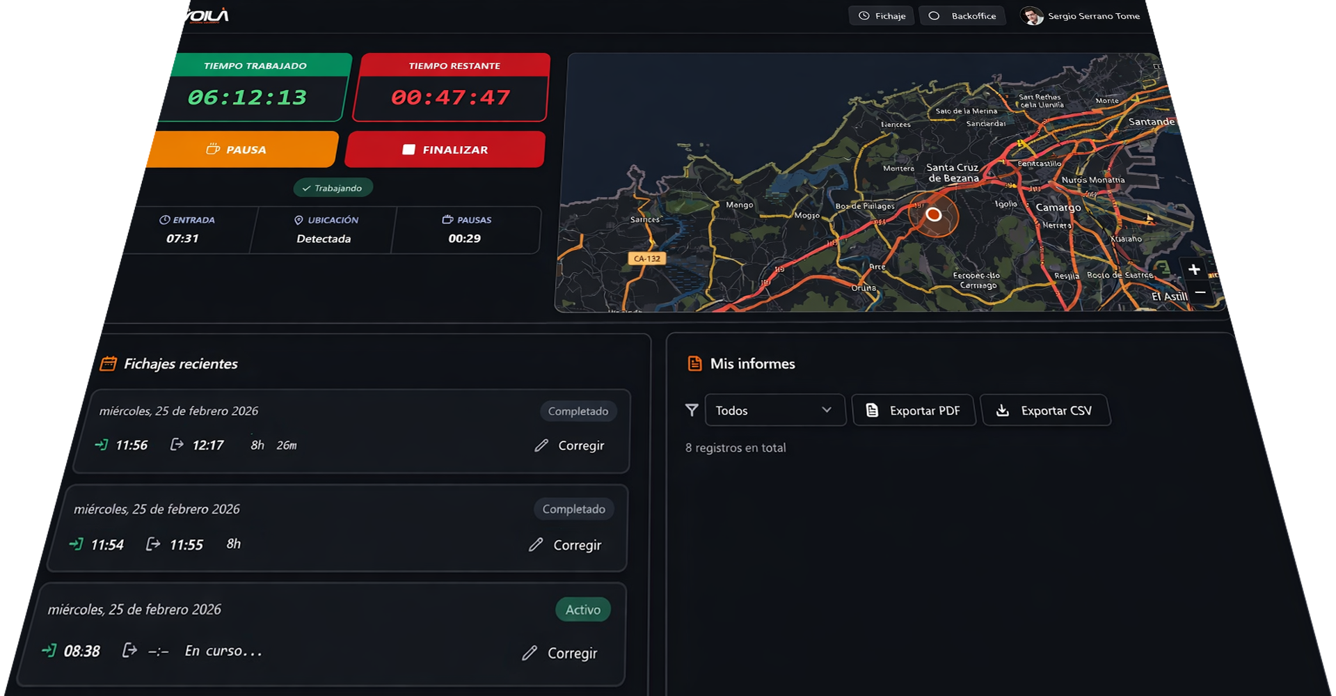 Cada empleado recibe sus credenciales y puede comenzar a fichar desde su ordenador en minutos.
